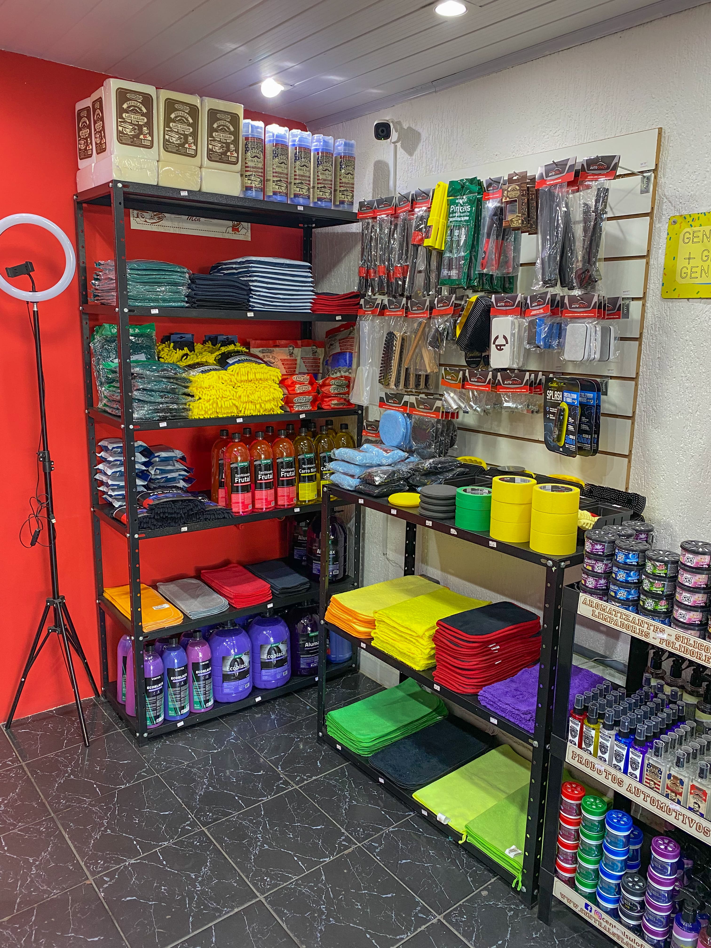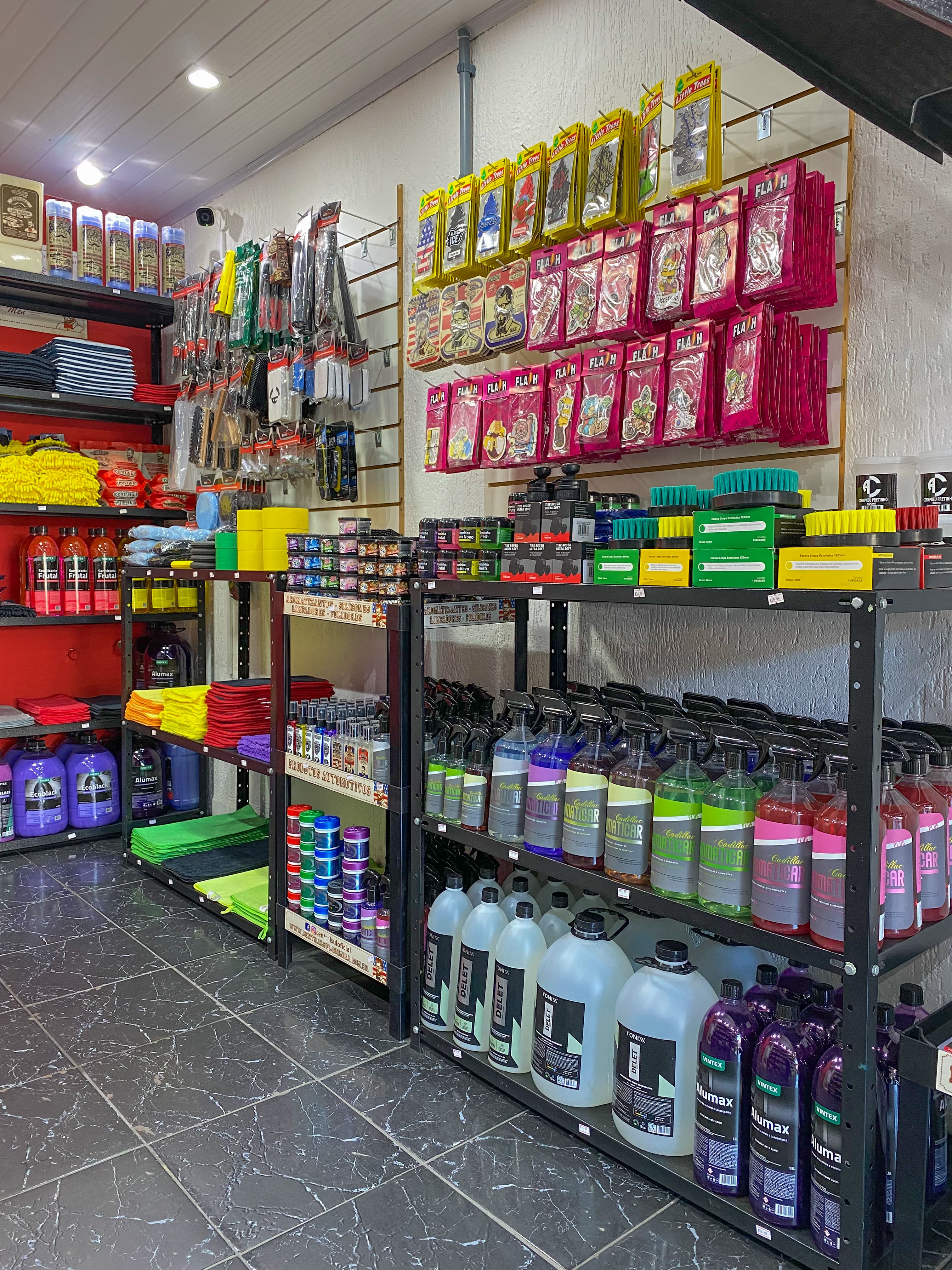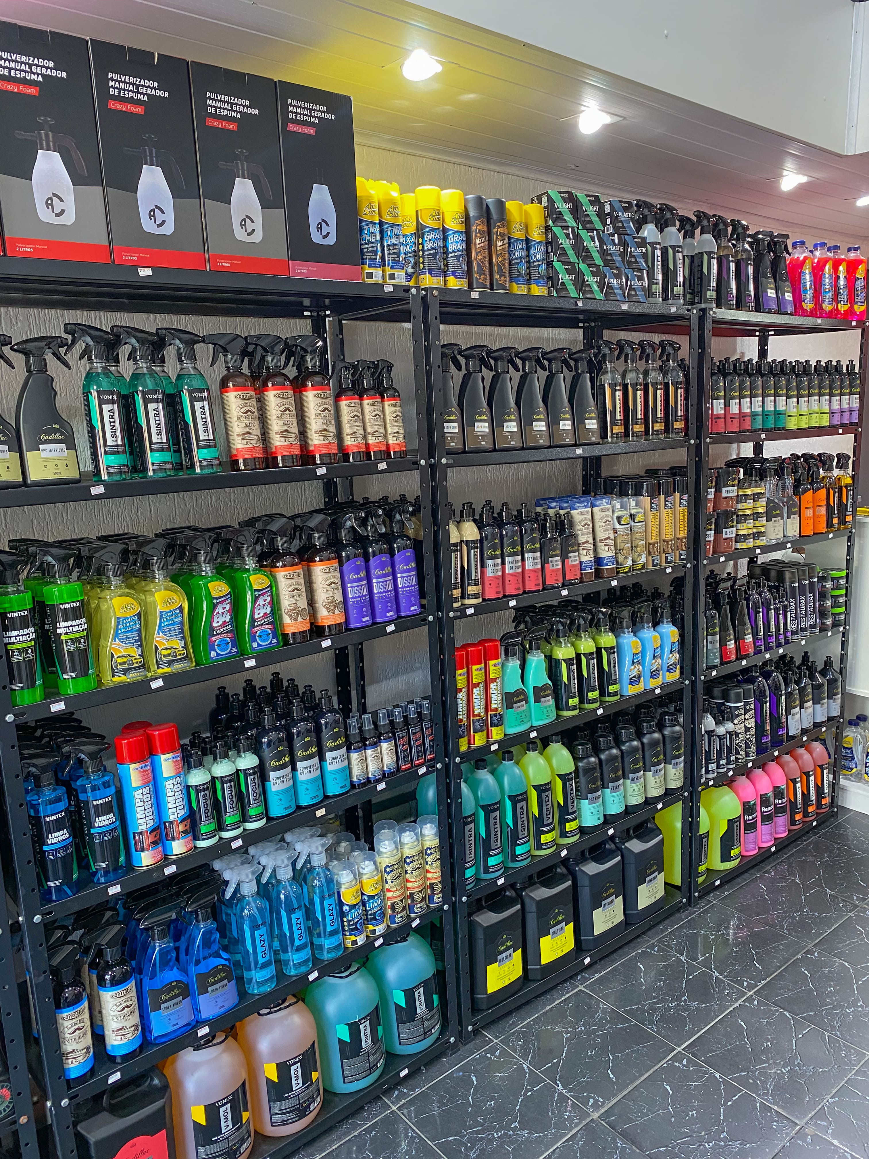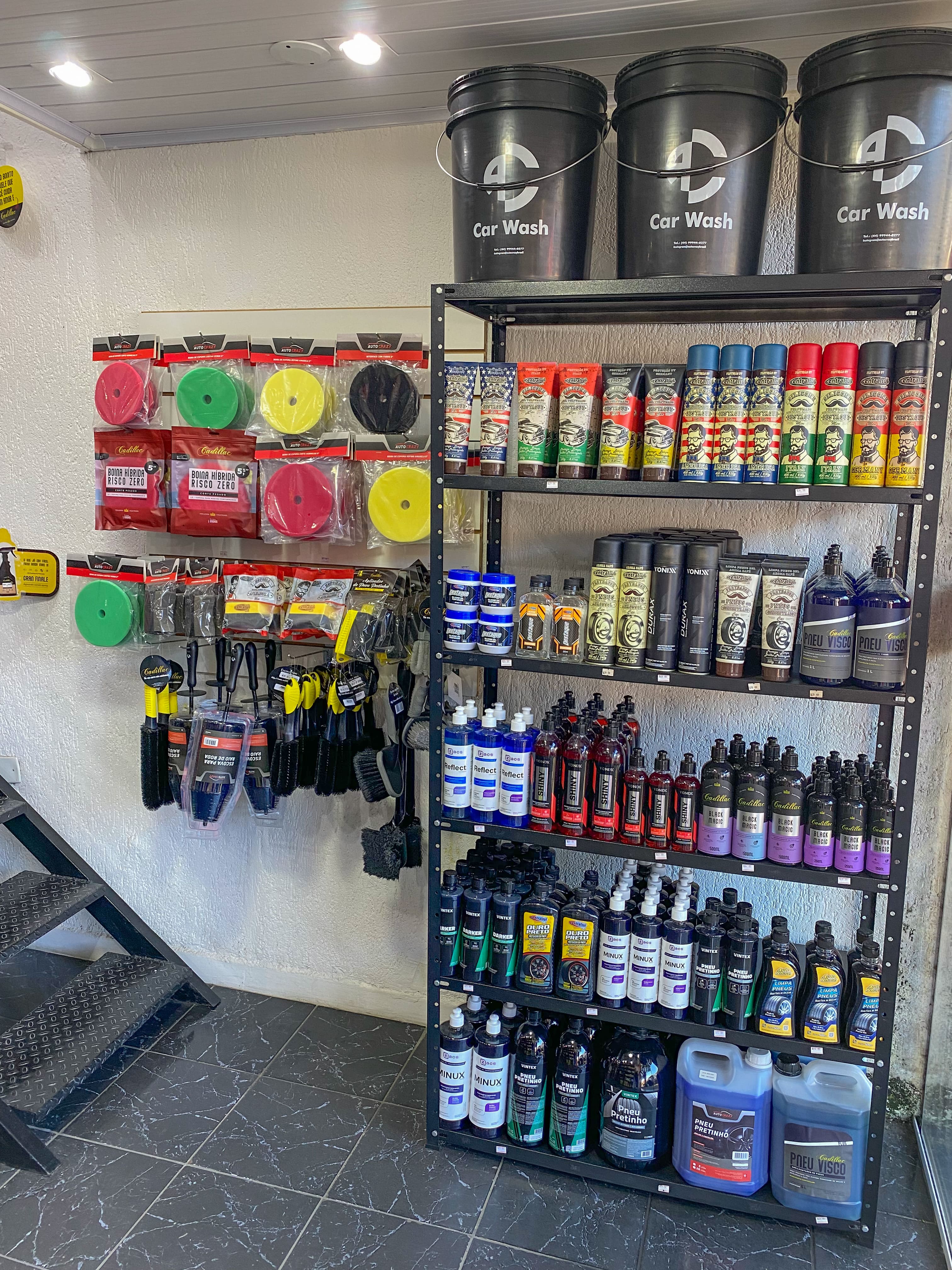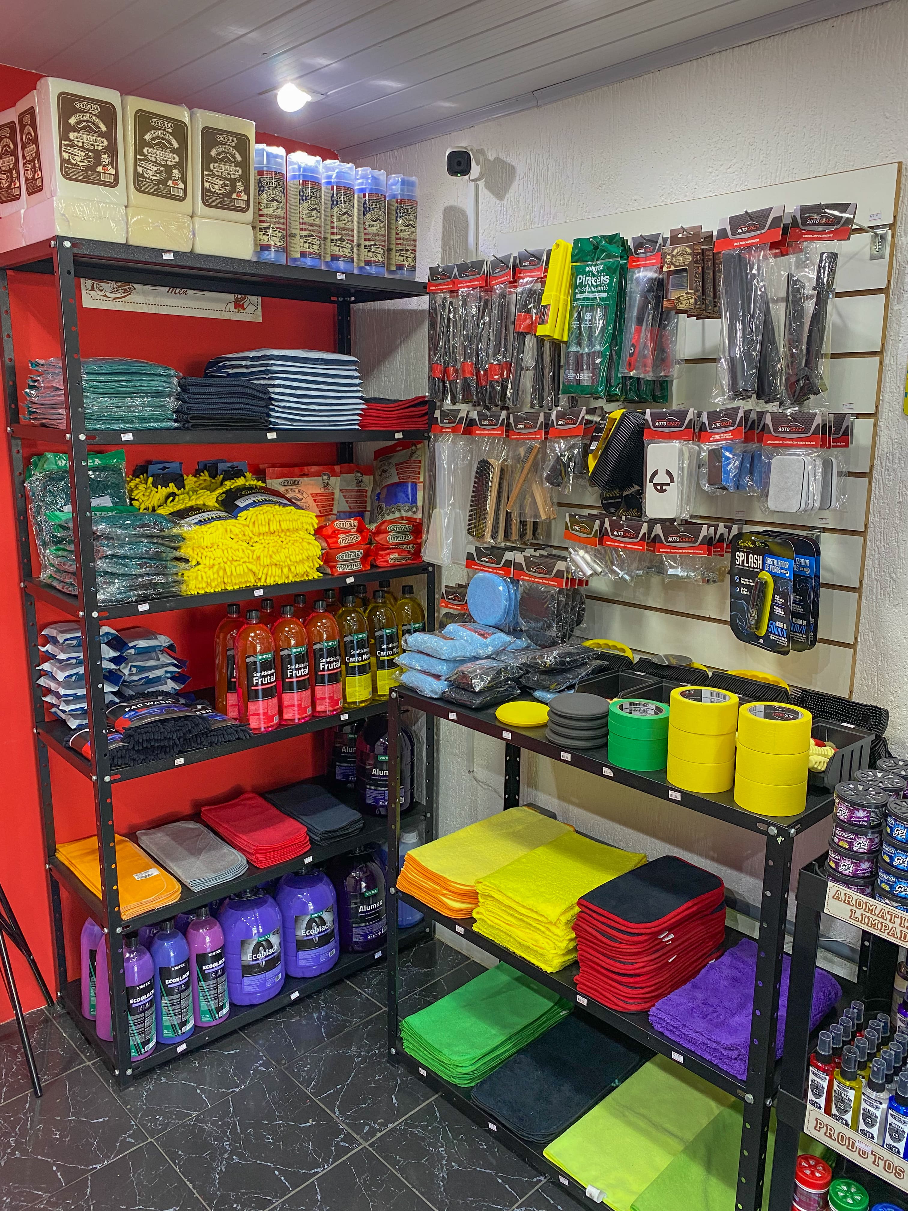 Comércio de produtos automotivos, ampla variedades de produtos para cuidados de limpeza, higienização, parte de estética automotiva e acessórios de detalhamento, limpeza e conservação para todos os cuidados de carros e motos. Aqui você encontra produtos como Shampoos, Pretinhos, Ceras, Lava Seco, Revitalizadores, Silicones, Multilimpadores APC's, Estofados e Couro, Aromatizantes, Microfibras, Escovas, Polidores e muito mais com ampla variedades de marcas como Central Sul, Cadillac, Vonixx, Auto Shine, Auto Crazy, etc.